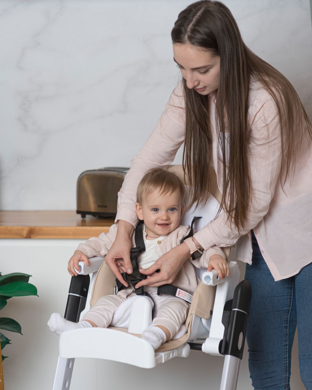 Also, sitting in such a high chair, the child will feel like a full-fledged family member and be at the same table with adults! Adjusting the seat of the high chair allows you to raise it to the desired level.
