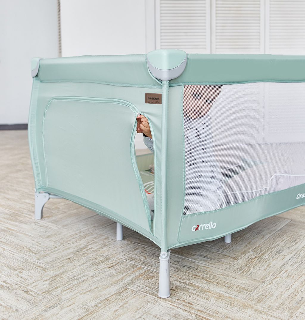 This playpen is another place to play: it has a built-in zipper that opens a manhole for the child. He can get out of it and come back on his own. The manufacturer has taken care of safety, so there are no sharp corners and protrusions in the device that can injure the baby. Everything is made for the comfort of the child, and where there is comfort, there is a pleasant sleep.