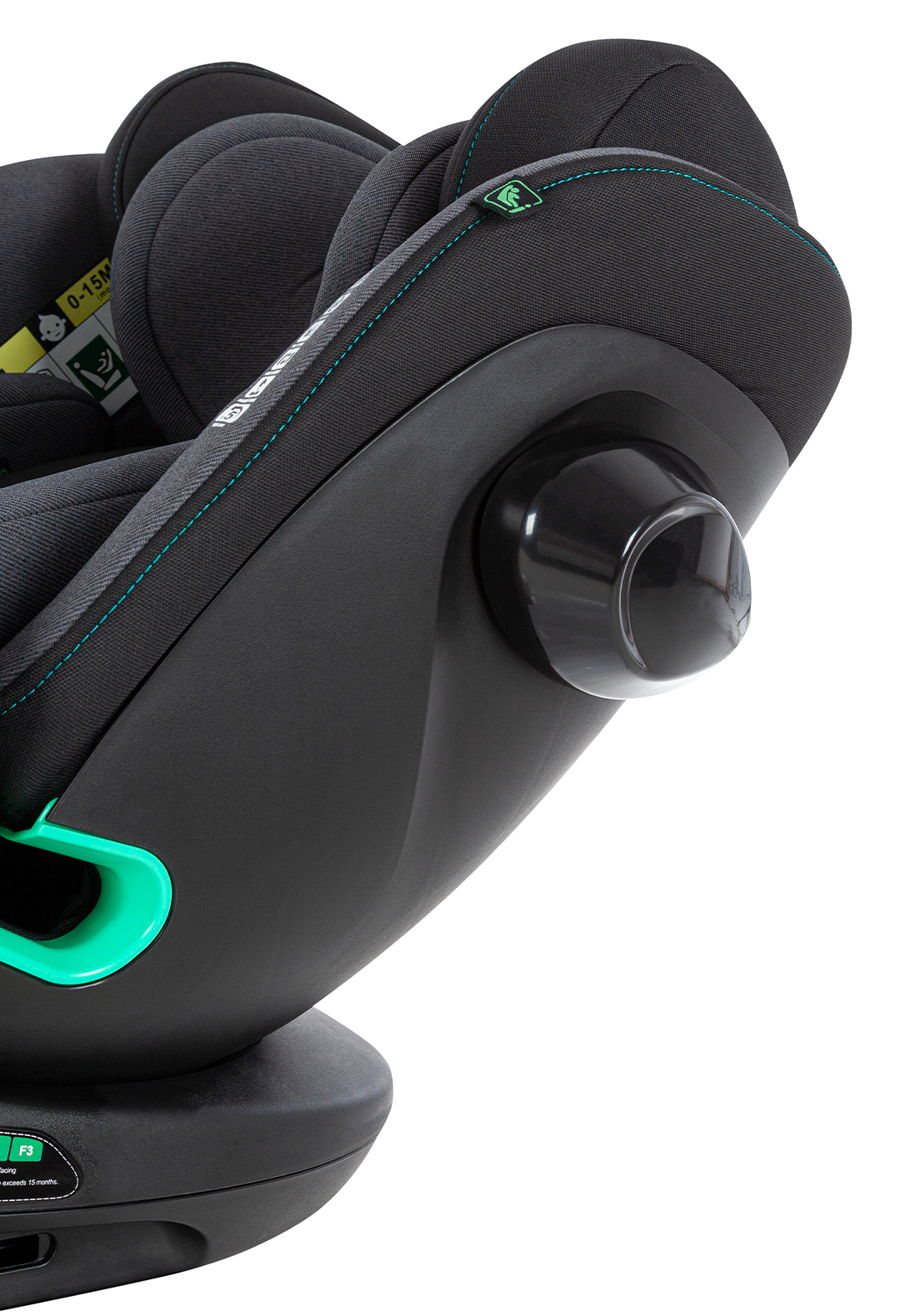 Car seat for children 40-150 cm. Complies with the certification standard in European countries - I-SIZE R129/03. Equipped with Isofix system, support base, Top Tether mounting system, side impact protection and 360° rotation.;