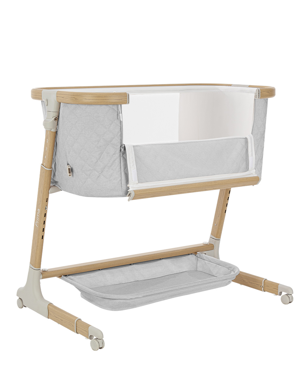 An innovative side-by-side crib with an electronic motion sickness system and many other useful functions.