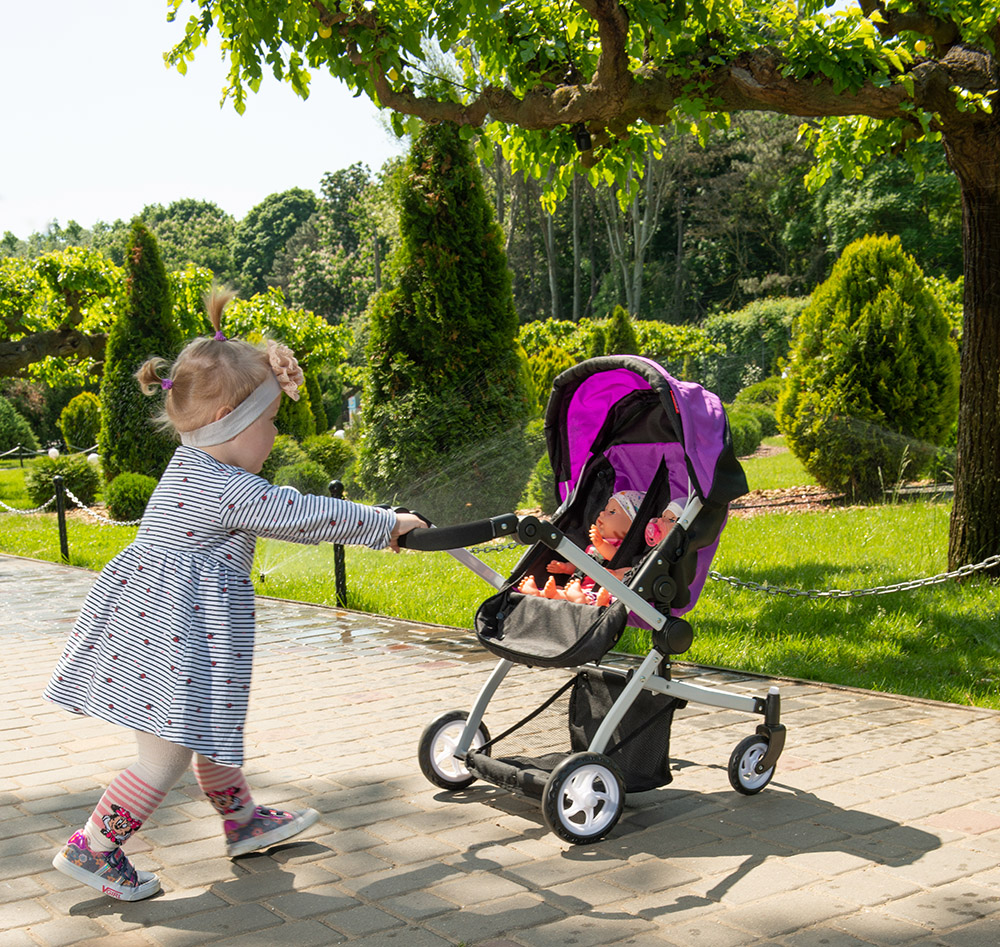 A folding chassis, a folding handle and the ability to take two dolls for a walk at once!