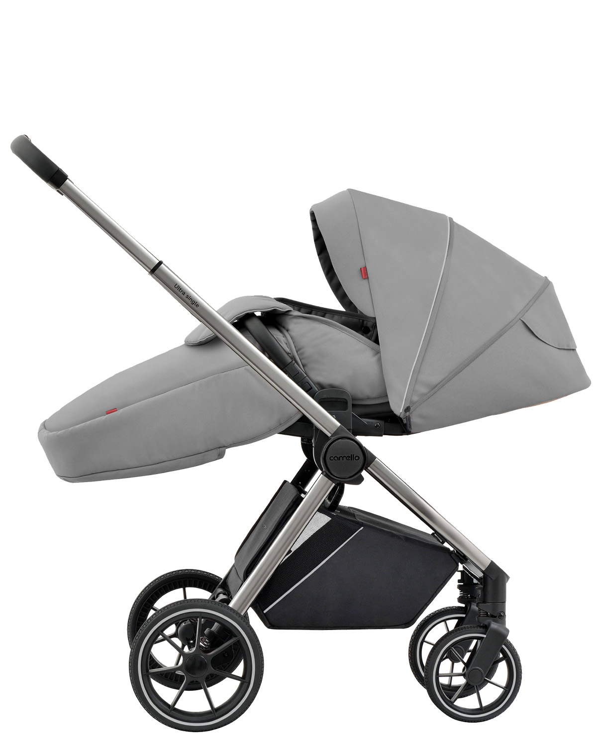 All-season stroller with reversible walking block, large wheels, soft cushioning and compact folding.